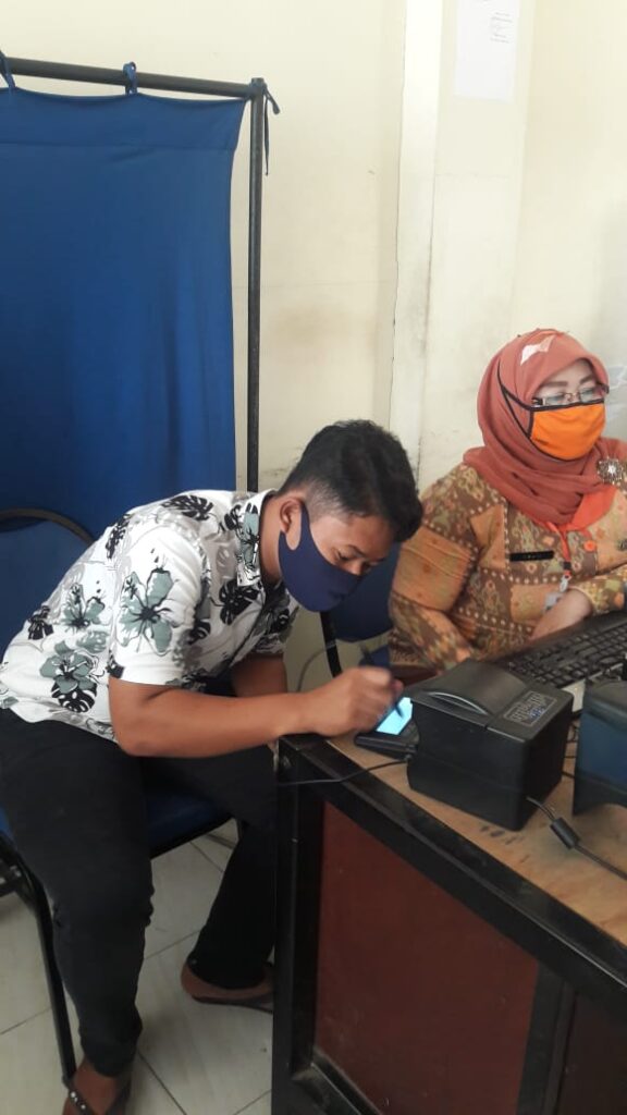 Demak- Kamis (22/7), Operator Dindukcapil Demak di TPDK Kecamatan Sayung, Antik Wantini melayani pengajuan permohonan perekaman atas nama Ahmad Faizn warga desa Sayung Kecamatan Sayung.