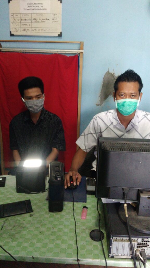 Demak – M. Pahlevi, Operator Dindukcapil Demak di TPDK Kecamatan Karangawen siang ini (24/7) melayani pengajuan permohonan perekaman KTP-el dari warga Kecamatan Karangawen. Dikarenakan salah satu peralatan perekaman KTP-el di Kecamatan Karangawen sedang dilakukan perbaikan.