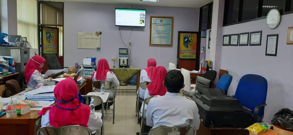 Demak – Jumat (24/7), para pejabat Struktural dan pelaksana di Dindukcapil Demak mengikuti Webinar penerapan Tanda Tangan Elektronik pada aplikasi Sistem Naskah Dinas (SINADIN) Tahap 2 dengan melalui zoom meeting yang dilaksanakan di ruang Sekretariat Dindukcapil Demak, lantai 2.