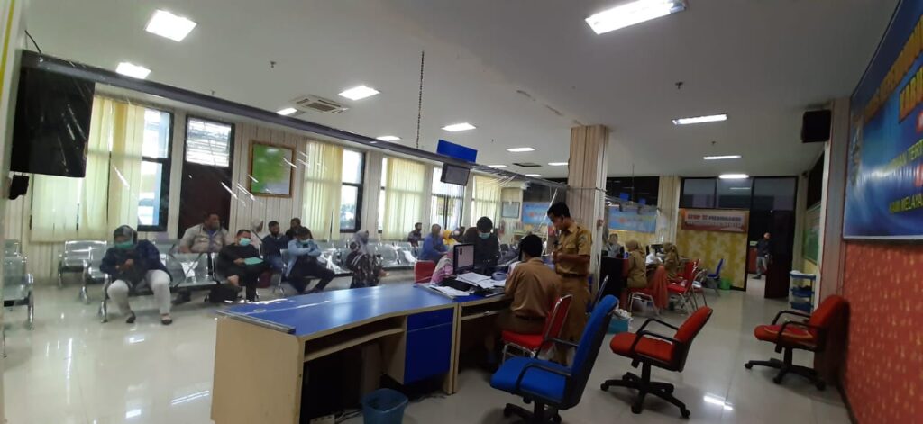 Demak – Kondisi masyarakat Demak yang datang di Dindukcapil Demak pada hari Senin (27/7) terlihat padat namun tetap terkendali, warga tidak ada yang berkerumun dan berdesak-desakan. Mereka duduk tertib pada kursi yang tidak diberi tanda silang.