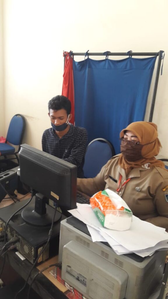 Demak- Senin (27/7), Operator Dindukcapil Demak di TPDK Kecamatan Sayung, Antik Wantini melayani pengajuan permohonan perekaman atas nama Ahmad Agil Ari Syahputra warga desa Sidogemah Kecamatan Sayung.