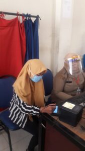 Demak – Hari ini (14/7) Koordinator Dindukcapil Demak yang bertugas di TPDK Kecamatan Wedung, Abdul Shokib menerima pengajuan kepengurusan dokumen kependudukan, diantaranya adalah perekaman data KTP-el. Warga di Kecamatan Wedung dari dibukanya pelayanan administrasi kependudukan sudah memadati ruang pelayanan di Kecamatan Wedung. Mereka mengantri dengan tetap memperhatikan protokol kesehatan, yaitu menggunakan masker serta tidak berkerumun