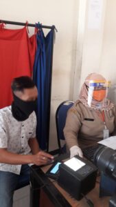 Demak – Pengajuan permohonan perekaman atas nama Amirul Isnaini yang beralamat di Mangunjiwan, Kecamatan Demak, Kab. Demak yang diproses kemarin (6/7) oleh Hasnul Khotimawati, Operator Dindukcapil di TPDK Kecamatan Demak. Hasnul dan Amirul bersama-sama mematuhi protokol kesehatan yang berlaku dan telah ditetapkan oleh pemerintah untuk mencegah penularan virus corona. Mereka wajib mengenakan masker, dalam kondisi …