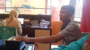 Demak – Dyah Arini, Operator Dindukcapil Demak di TPDK Kecamatan Mranggen kemarin siang (28/7) melayani pengajuan permohonan perekaman KTP-el dari warga Kecamatan Mranggen. . Lathif Fathurrahman yang berlamat di Desa Batursari, Kecamatan Mranggen ini segera menuju ke Kecamatan Mranggen. Syaratnya untuk melakukan perekaman KTP-el baru adalah dengan hanya membawa Kartu Keluarga saja.