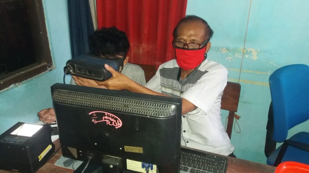 Dengan dilayani oleh Marzuki, Operator Dindukcapil Demak di TPDK Kecamatan Wonosalam ini, Rabu (5/8), Rizal melakukan perekaman data KTP-el di kecamatan Wedung. Dimulai dari rekam iris mata, sidik jari dan tanda tangan. Sebelum itu baik warga dan operator wajib menggunakan hand sanitizer untuk mencuci tangan baik sebelum dan sesudah melakukan perekaman.