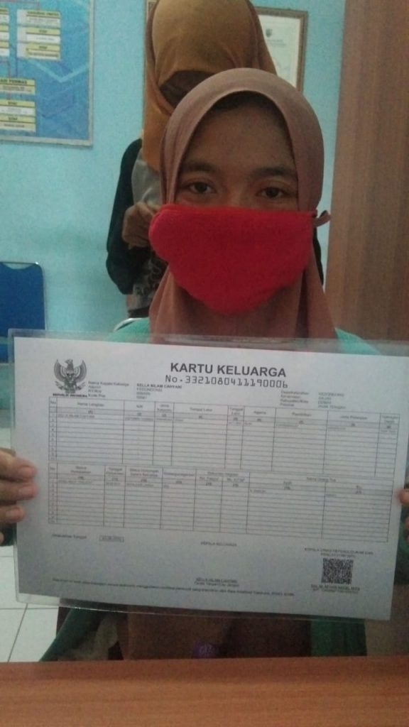 Sella Nilam Cahyani yang merupakan warga Desa Kedondong Rt 05 Rw 04 Kecamatan Gajah Kabupaten Demak ini membuat KK yang berisi dirinya sendiri dikarenakan adanya pengurangan anggota keluarga.