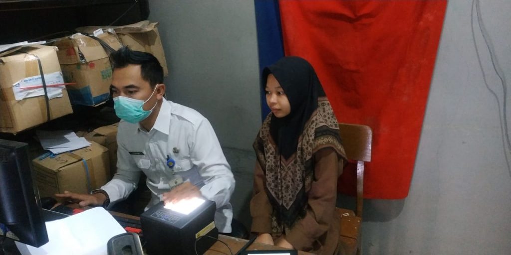 Demak – Pengajuan permohonan perekaman data KTP-el yang dilakukan oleh Fita warga desa kenduren rt rw5 Kecamatan Wedung, hari Jumat (7/8) kepada Operator Dindukcapil Demak di TPDK Kecamatan Wedung yaitu Arief efendi.