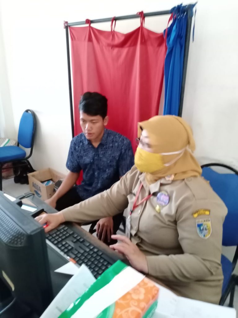 Demak- Senin (7/9), Operator Dindukcapil Demak di TPDK Kecamatan Sayung, Antik wantini melayani pengajuan permohonan perekaman atas nama Beni saputra warga desa Dombo Kecamatan Sayung.