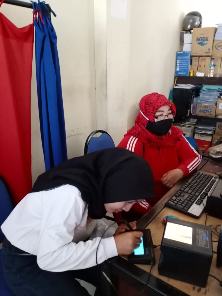 Demak- Jumat (18/9), Operator Dindukcapil Demak di TPDK Kecamatan Sayung, Antik wantini melayani pengajuan permohonan perekaman e-KTP atas nama Diva Permatasari warga Desa Tambakroto Kecamatan Sayung.