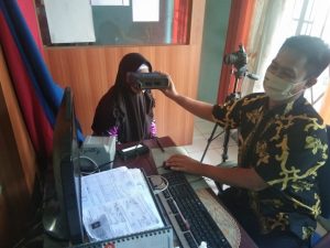 Demak- Minggu (4/10), Operator Dindukcapil Demak di TPDK Kecamatan Bonang, Okti melayani pengajuan permohonan perekaman dari 2 Desa yaitu Poncoharjo dan Bonangrejo Kecamatan Bonang. Lembur sabtu & Minggu ini untuk menindak lanjuti tugas dari Bupati Demak agar Pelayanan kependudukan (e-KTP) terkait PILBUP yang akan datang.