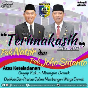 Demak – Kemarin (4/5), Bupati dan Wakil Bupati Demak Periode 2016-2021, H.M. Natsir dan Drs. Joko Sutanto memasuki masa purna tugas dan melakukan serah terima Jabatan Bupati Demak di Pendopo Satya Bakti Praja, Demak. Selamat Memasuki Masa Purna Tugas Bapak Natsir dan Bapak Joko Sutanto, Semoga Pengabdian pak Natsir dan pak Joko membawa Berkah, Manfaat …